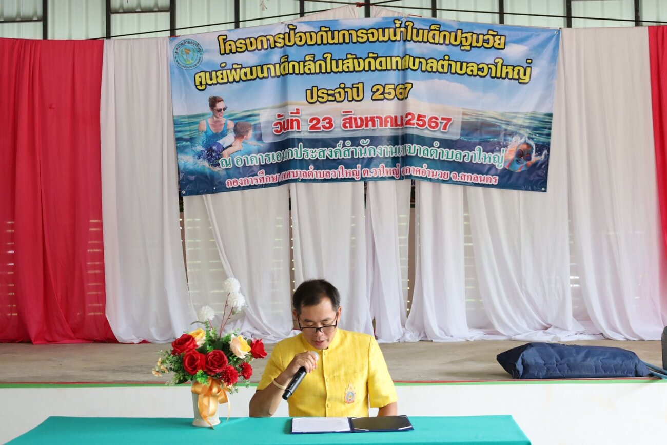 ภาพที่เกี่ยวข้อง วันที่ 23 สิงหาคม 2567 กองการศึกษา เทศบาลตำบลวาใหญ่ ดำเนินโครงการป้องกันการจมน้ำในเด็กปฐมวัยศูนย์พัฒนาเด็กเล็ก ประจำปีงบประมาณ 256 ณ อาคารเอนกประสงค์เทศบาลตำบลวาใหญ่